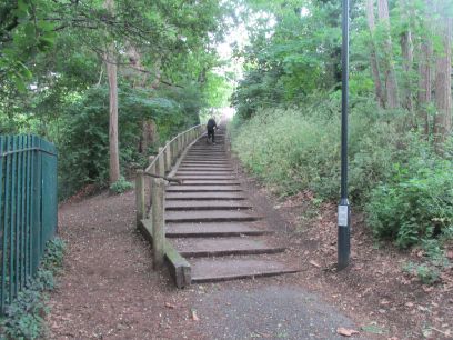 Down the long staircase into the Slade with its pond at the bottom, then up the other side onto Winn's common.