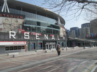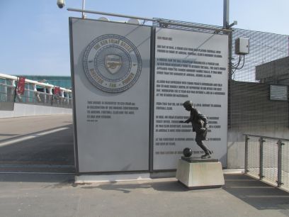 The route of the brook follows Holloway Road down to Arsenal and the first prominent landmark is Arsenal's Emirates stadium, opened in 2006. It was not apparent on Google Street View but there is a public right of way right round the stadium at several levels and it is an impressive building. You can pay to tour inside, but with no interest of the game I gave that a miss. The impressive Ken Friar Bridge, a long time supporter of the club and its new home, crosses the railway line giving access to the station.