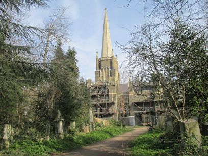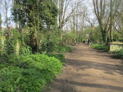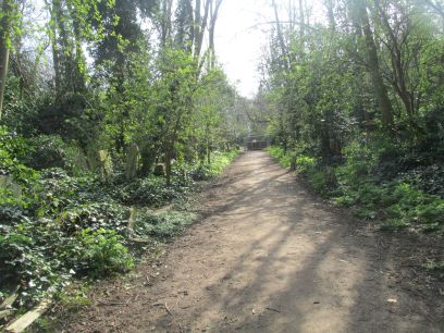 Here I diverted from the suggested route in the book (which went down the not very interesting main road) into Stoke Newington town centre for a bite of lunch at the Nandos there. After refreshment I then went through Abney Park Cemetery. Hackney Brook follows the northern edge of the cemetery (it was already culverted when it was opened in 1840). I could see a dip in the ground along there as if there was a stream flowing by (though dry). Abney Park is a fascinating place and I always find something new and being in the area and not visiting it didn't seem right. They are doing major restoration work on the chapel at the moment and on my way out saw signs that they would be closing my exit gate for related work at 2pm, got out just in time!