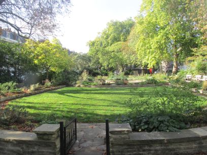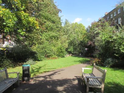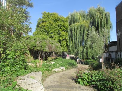 The walk starts from Angel underground station. After a good journey up to Waterloo I used the Waterloo and City line then the Northern line to arrive here at 10.30. The bustle here was soon over as I turned into Duncan Terrace Gardens, a pleasant area of woodland between the city streets which follows the route of the New River, covered over here in 1861.