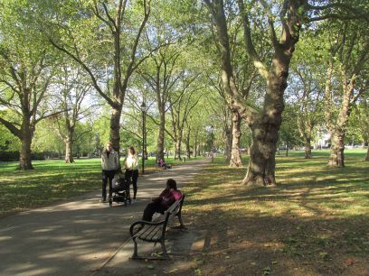 After passing Highbury and Islington station and a busy shopping area Highbury Fields is reached, the largest open space in Islington. At the entrance is a memorial to those who lost their lives in the Boer War. Then through the fields which was very pleasant.