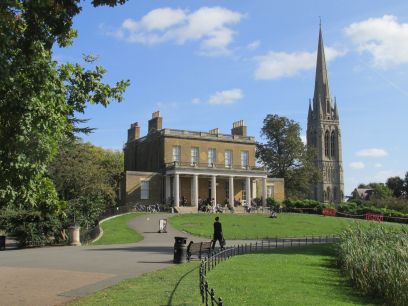 The New River as it flows through Clissold Park. Then Clissold House and the spire of the new church in Stoke Newington. I continued into Stoke Newington where I lunched in a restaurant before making my way to the station there and the journey home.