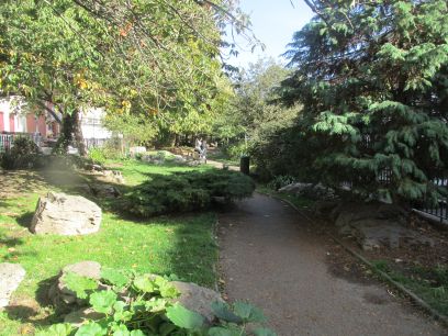 More pleasant gardens alongside Compton Terrace to reach Highbury Corner.