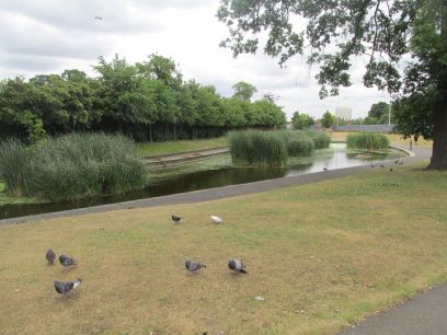 I first retraced my steps through Pymmes Park and picked up the route of the trail at the far end. This follows the route of the Pymmes. A large lake is fed from the brook.