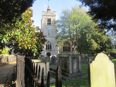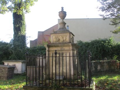 Out of the Chiswick House estate and down to the river again passing through Chiswick Parish Church. Here is the grave of the artist William Hogarth with its large urn and inscription.