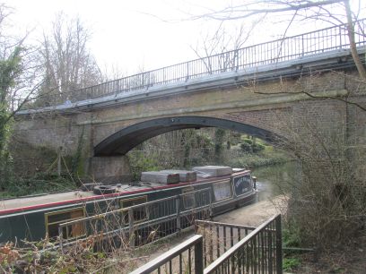 After Swiss Cottage the river reaches the Regent's canal. Unlike the Fleet which goes under the canal, the Tyburn crosses it in a carefully hidden aquaduct built within the structure of Chalbert footbridge with a couple of inspection covers on the footway being the only clue.