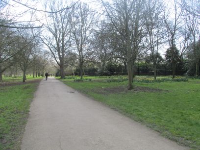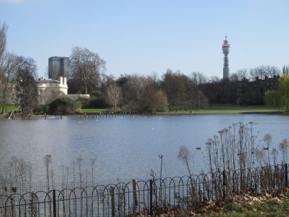 So into Regent's Park which was very pleasant on a quite spring like day. The boating pond was originally formed by damming the river but when that became a sewer it was separately routed. It was the scene of a disaster in 1867 when its ice gave way and forty skaters were drowned.
