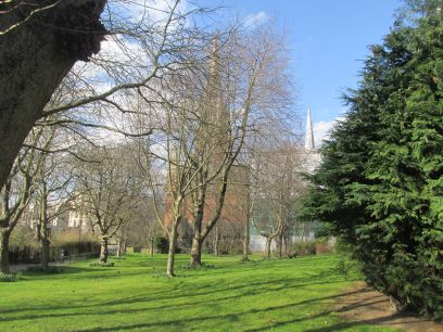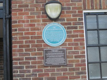 Back close to the river the area is passed where Kilburn Priory was until dissolved in 1537 on the instructions of Henry VIII. The roads round here reflect the priory including Abbey Road in the Beatles song. Then the magnificent St Augustine's church with its tall spire. Immediately after this is Paddington Recreation Ground with tennis courts, cricket pitch and athletics track. Two plaques on the wall of the pavilion, one for Sir Roger Bannister and one for Sir Bradley Higgins who both trained in the facilities.