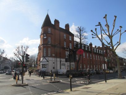 The route continues parallel to the hidden river through Heath Ride and Canon Hill, a fairly up market area with splendid houses. First passed is Marlborough Mansion where the conductor Sir Adrian Boult once lived. Further along the Journalist and Newspaper Proprietor Alfred Harmsworth, now in the West End area - where west means west of Hampstead.