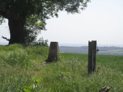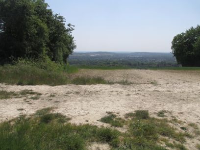 A trig pillar is seen off the path, 202m (663 ft). At the adjacent summit I turned off North Downs Way, some more excellent views from here.