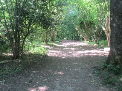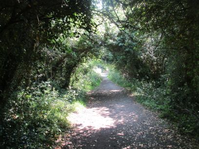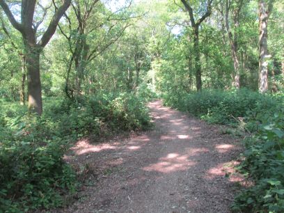 Green Lane is followed south for a mile and it certainly fitted its name, a lovely path through the trees. At the end, having crossed a busy road, a short detour is made through a rather nice housing estate.