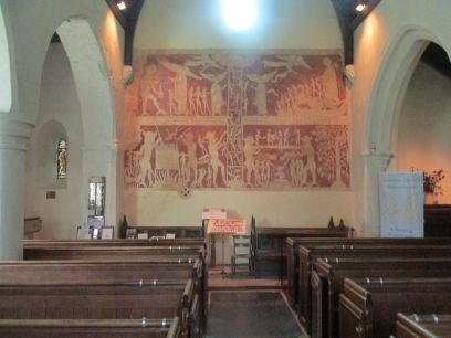 Into the small village of Chaldon. It's church is famous for its Doom wall painting which covered the west wall and which dates from around 1200. It depicts Hell and Purgatory below, while the fortunate scramble up a ladder towards heaven. Well worth the quick look inside.