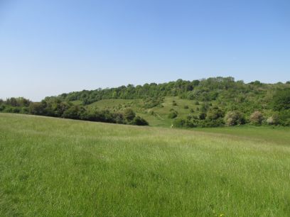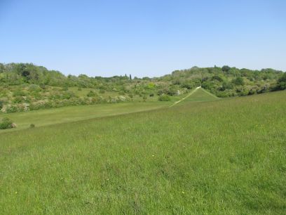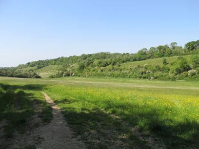 Out of the village and another path across an enormous field. Passing a small bit of woodland I reached Happy Valley.