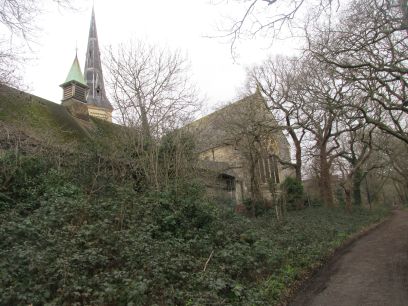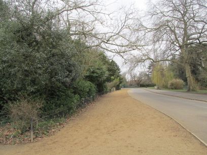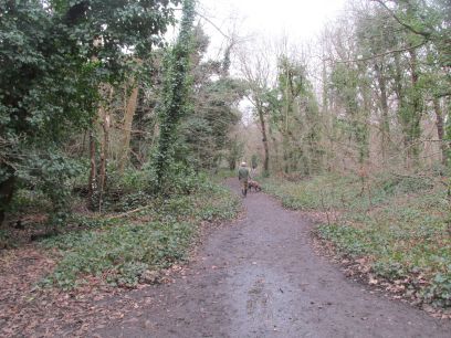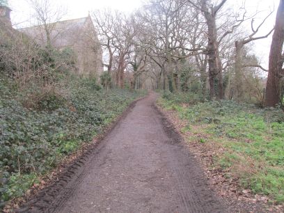 Out of the park then along the South Circular to reach Cox's walk, last walked as part of the Green London Way. The church of St Peter is at the start. Cox's Walk is part of Sydenham Hill Wood and an 18th century oak-lined avenue.