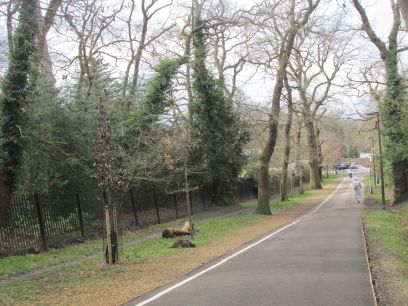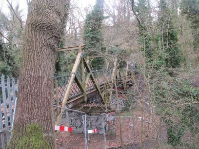 Half way along is a bridge over the disused Nunhead to Crystal Palace (high level) railway which closed in 1954. This bridge has been closed for repairs for some years with issues about oak trees which would need to be felled. It seems an agreed way to proceed without felling the trees has now been sorted and workmen were already there in preparation.