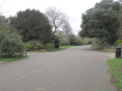 Through Sydenham Wells Park, an attractive park and a remnant of Sydenham Common with palm trees and a lake.
