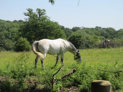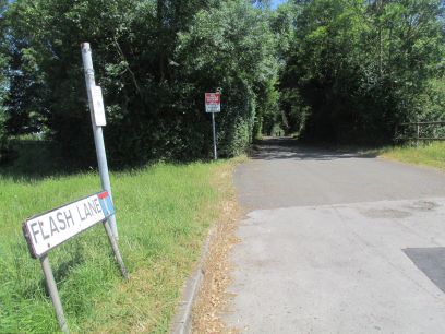 Crossing over I enter Flash Lane. Initially a road leading to a scattering of houses and a farm it becomes more narrower and eventually a track through the woods. A horse in an adjacent field eventually decided to pose for me.