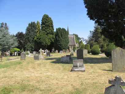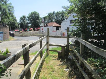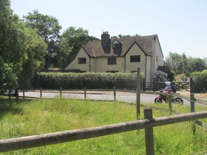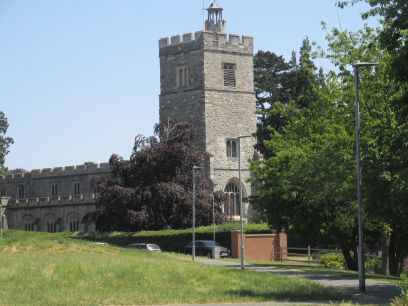 The path continues and eventually meets a junction on Strayfield Road. Here is St John the Baptist's Church and a weatherboarded former pub dating from the sixteenth century.