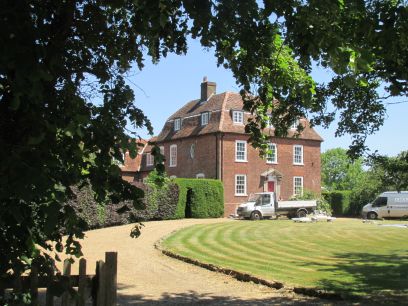 Once over and peace slowly returning I again had to fight through a jungle of unmaintained footpath. Coming out in the clear again I reached the pleasant Theobald's Manor, a Queen Anne style house. Then skirting around Home Wood to reach a field with a gate that had seen better days. Across the field of newly harvested stubble, the gate across the stream the opposite side was virtually impossible, I had to gingerly lower myself under a wooden railing and navigate the deep fortunately dry gully beyond.