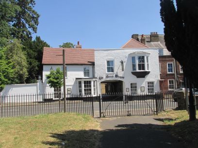 Then across grassland to St Mary's church and its pleasant graveyard. The Green Dragon is an ancient coaching inn dating from the 16th century but is now flats. I stopped now for lunch which I had at the Crocodile a little further down College Road, which was a nice refreshing break.