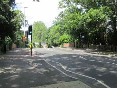 The path skirts the buildings of Broadfield Farm before crossing a busy dual carriageway via Barrow Lane. At the opposite side is Cheshunt Cemetery with old and new sections. Now a longish section through suburban streets and Dark Lane to reach Goff's Lane, passing a school.