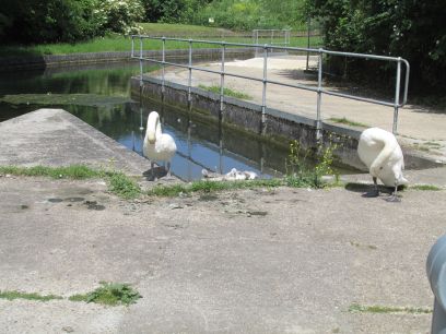 The swans may be enjoying themselves but I was suddenly confronted with a fenced off path with no obvious way out. I had gone just a mile of my day's walk.
