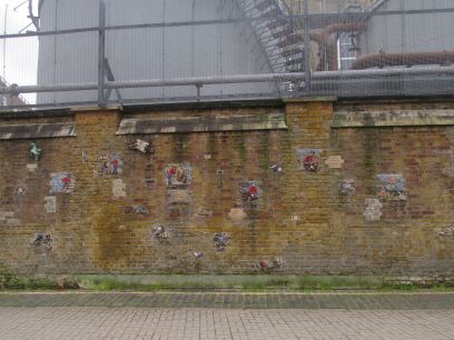 I stopped for lunch at the Trafalgar Tavern which was most pleasant then continued through the old streets of Greenwich. By the power station is the Thames Tale painted on the wall, a story of Stan and his dog going for a walk along the river.