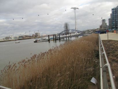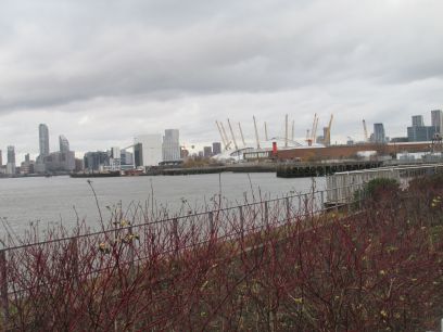 Out of Greenwich and the towpath swings round the Greenwich peninsular. The O2 and Morden Wharf come into view. The Alcatel Jetty is open to the public and offers a superb view back to Greenwich. It is interesting how the path around the peninsular has improved. Originally this route was impassable and the Thames Path went directly across the peninsular. As recently as 2019 I found parts of the route thick mud among the various building works. But it is now complete and you can walk the whole way on proper paths.