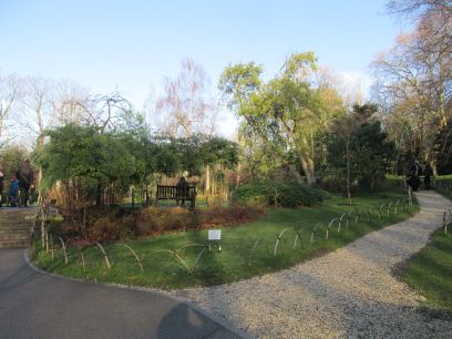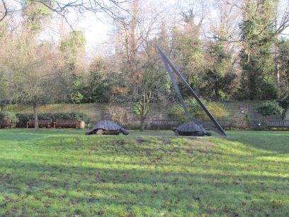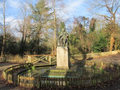 The north side of the park is woodland and the paths were a little confusing. A large sundial appears, mounted on brass tortoises, commissioned in 2000 to mark the new millenium. Then the statue of Lord Holland seated in a chair, after whom the park is named. The path opposite him which I should have followed across the North Lawn was closed off to allow the lawn to regrow so I had to make a bit of a diversion to reach the exit of the park beyond the house.