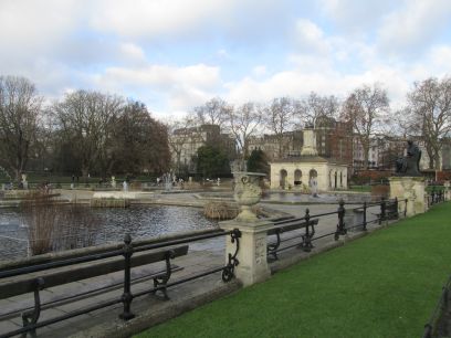 The walk starts from where I left off the previous week, the Italian Water Gardens in Kensington Gardens. Then along Peacock Walk by the Long Water down to The Arch, a sculpture by Henry Moore with the distant Kensington Palace framed by it.