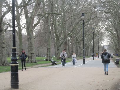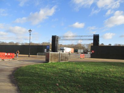 Workmen are clearing up after Winter Wonderland and this part of the park is currently fenced off - and although it was supposed to be re-opening in a couple of days it looked quite a quagmire inside. So I had to follow the alternative route given in the guide up to Speakers Corner, itself made harder with serious works going on around that, to pick up the avenue of plane trees leading to Hyde Park Corner.