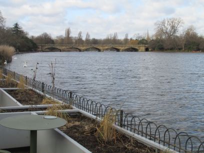 Joining the Serpentine I walked along its southern bank towards the Serpentine Bridge, passing the swimming lido and restaurant.