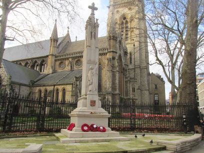 The Elfin Oak, the stump of a 900 year old oak tree carved with gnomes, elves and fairies. I left Kensington Gardens here and then walked along Kensington Palace Gardens, a private road with embassies and other government buildings. Photogaphy was no allowed there. At the end the magnificent St Mary Abbots church. I stopped near here for lunch which was very pleasant.