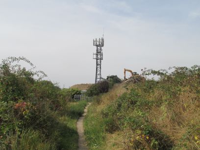 Along the Cray for a while then a small industrial area is reached starting with a mobile phone mast.