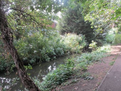 After seeing a barge on the Cray, the river must be left for a while as the Loop travels through this industrial area eventually reaching the busy A206. Crossing this via several pedestrian crossings countryside is again reached with a path running parallel to the Cray which is hidden behind dense vegetation.
