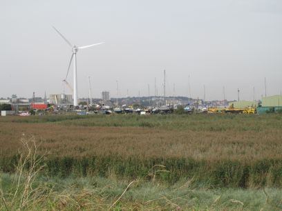 At the top of Manor Road is Erith Yacht Club and we reach countryside again. A large wind turbine dominates the view, at first stationary but a small breeze came and it slowly turned.