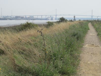 Inland along the Darent and through the Cray and Dartford Marshes until that path in turn is blocked where the Cray joins it. it.