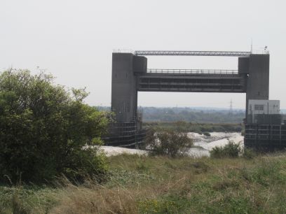Now we walk along the river, this part is the Thames Path extension but is soon interrupted by the river Darent. The QE2 bridge carrying the M25 across the river dominates. There is talk of a crossing but for now the Thames path must stop here on the southern bank. Turning down the Darent, the Dartford Creek Flood Barrier serves the same purpose as the much larger Thames barrier.