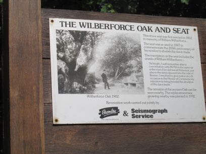 The Wilberforce Oak was the scene of a conversation in 1788 between William Wilbeforce and William Pitt the Youngerthat resulted in the bill to abolish the slave trade. Nearby is a plaque giving the details and a fenced off seat.