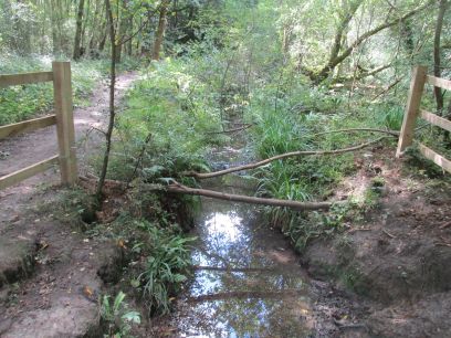Through Jubilee Country Park and then along a quiet suburban street to reach Crofton Wood. Half way along I crossed a stream.