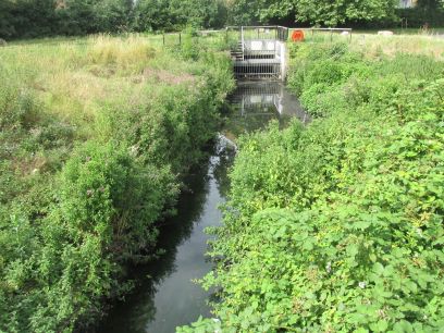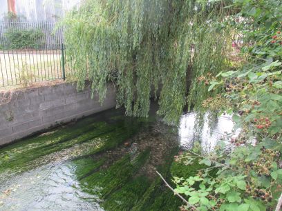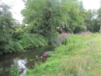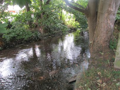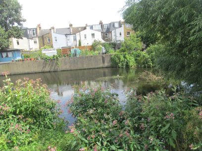 I pick up the Wandle again alongside Wilderness Island, a public park. Somewhere inside here the two branches of the Wandle join but I did not venture into the park to see.
