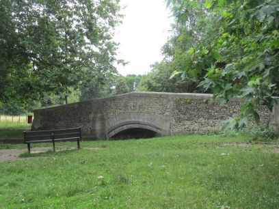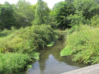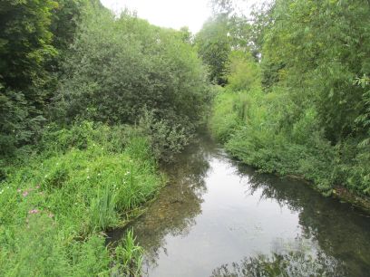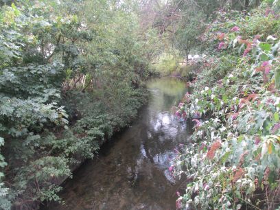 The Wandle is soon reached at the bridge over Goat Road and the path continues along the wooded Poulter Park.