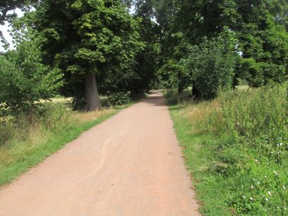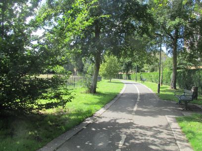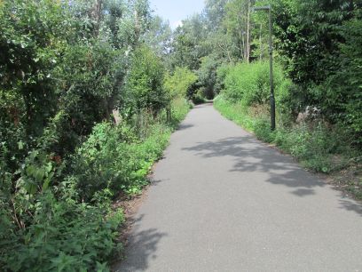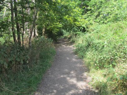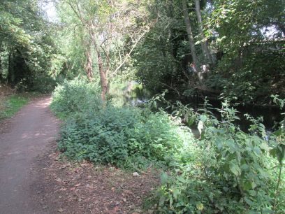 A long path first through a busy car park and narrow access road then quiet woodland along the river.