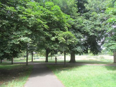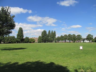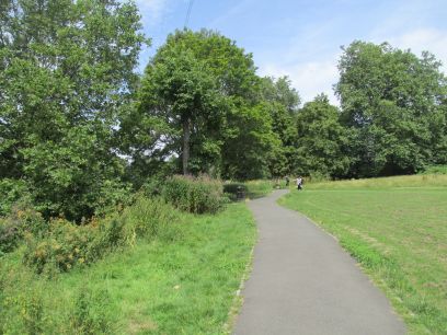 The brook is mainly hidden by vegetation but can be seen from several bridges along the way. Open playing fields form the main part of the park.