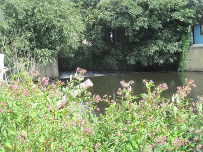The river now in full flow as I passed the old Beddington Mill (now flats).