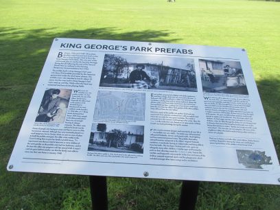 Another view of the river, now quite wide. Then an interesting information board gives some of the park's history. It formed a large housing estate of prefabs in the post war years and I learnt about one of its inhabitants, the Allens, and post war life.