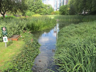 Towards the top of the park is a large lake, not linked to the river, but I soon reach the busy centre of Wandsworth and the river approaches the Thames.