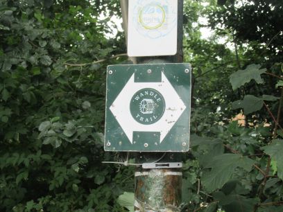 Now a pleasant walk on a wooded path with the river somewhere to the right. The trail is marked by signs but these are few and far between. This one is the first I saw.