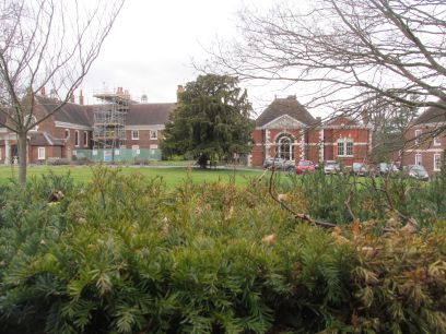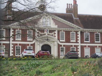Then a long and pleasant footpath which skirts the grounds of Morden College. Like the New River this is neither a college nor in Morden, but a charity providing residential care for the elderly. It was founded in 1695 by Sir John Morden. A grand building and the impressive front entrance has statues of Sir John and his wife above the door. Totally enclosed with high fencing which made photography not that easy.