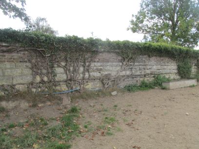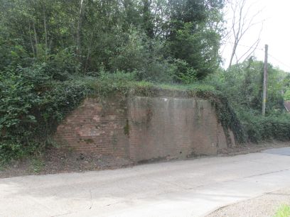 For a while the Worth Way leaves the route of the railway while it runs across farmland. It was in a cutting at this point, now filled in, and we were interested to see remains of a bridge carrying pipework and another bridge on the farmers lane protruding out.